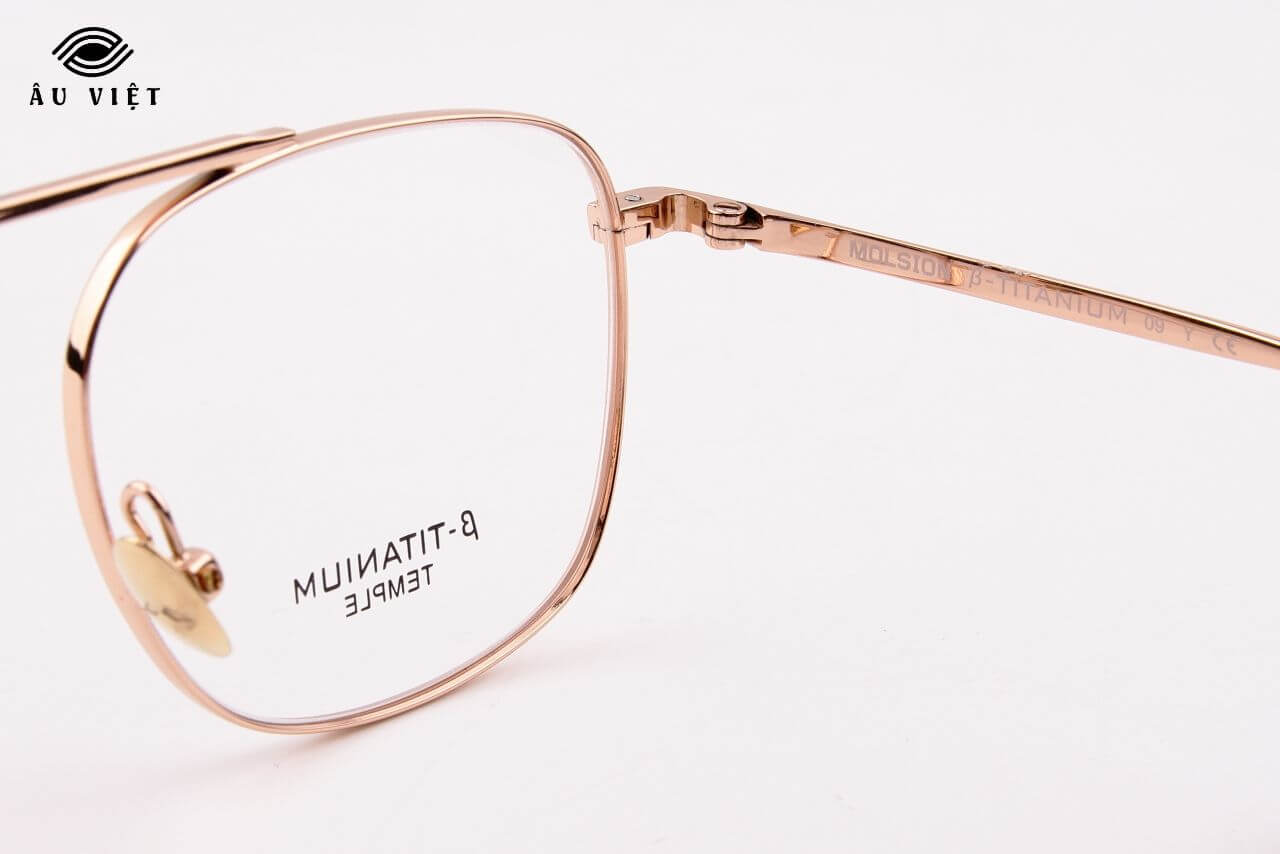 Titanium siêu nhẹ, siêu bền, phù hợp đeo cả ngày mà không gây nặng sống mũi.