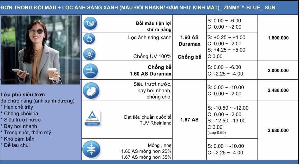 Kết luận: Với công nghệ hiện đại và khả năng bảo vệ mắt toàn diện, Zinmy 1.60 Blue Control là lựa chọn hoàn hảo cho người thường xuyên làm việc với thiết bị điện tử, giúp duy trì tầm nhìn rõ nét và sức khỏe đôi mắt lâu dài