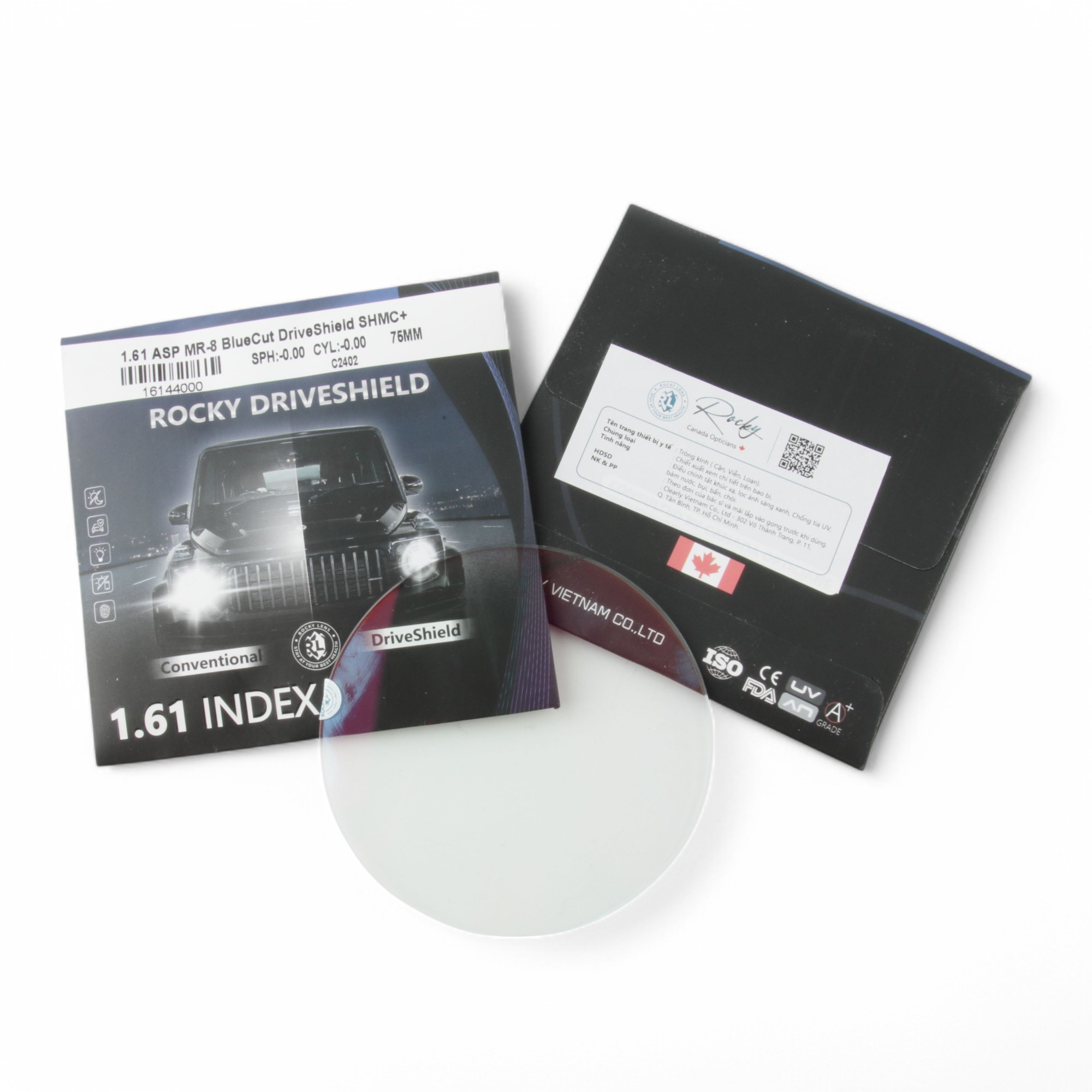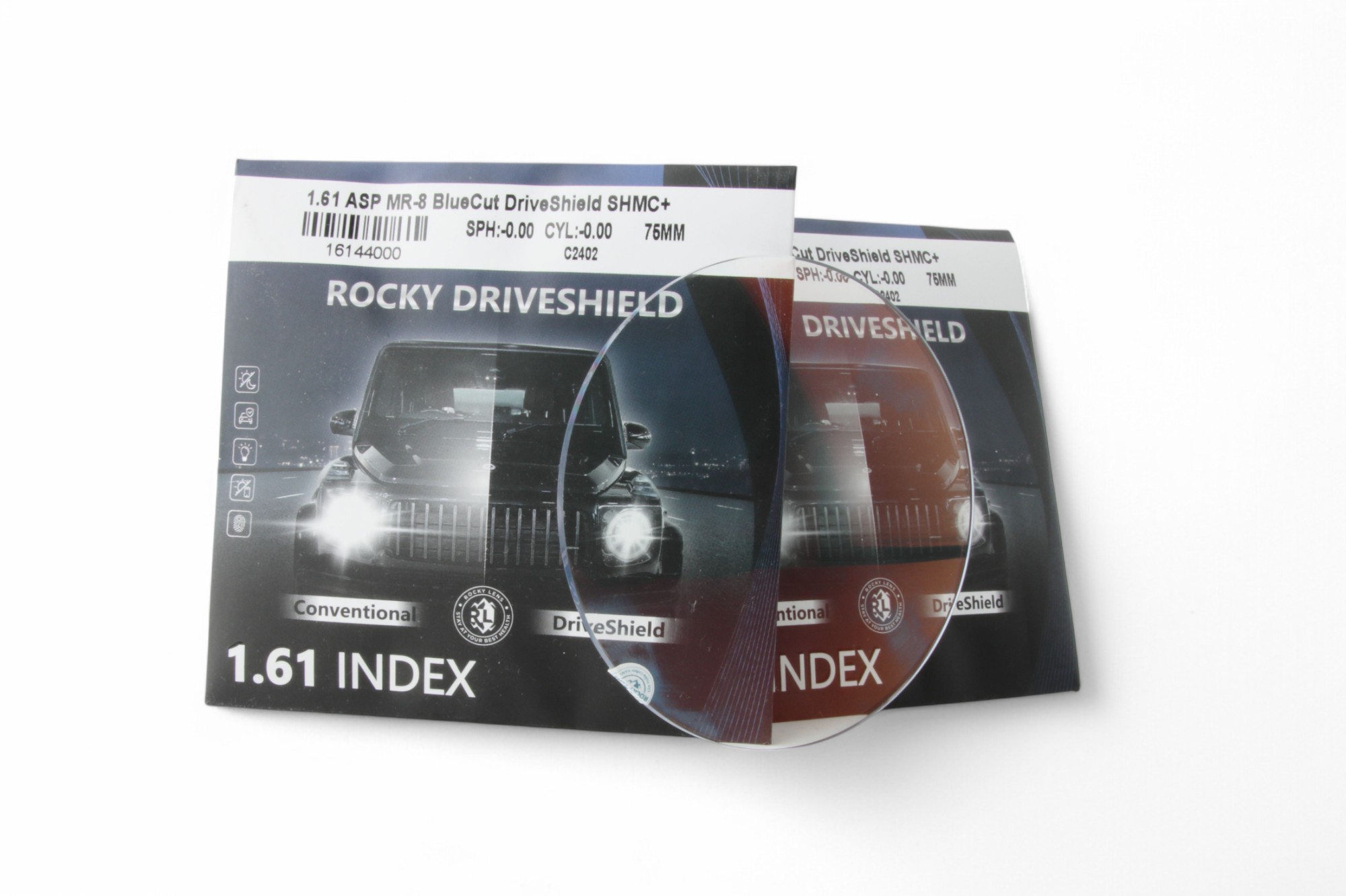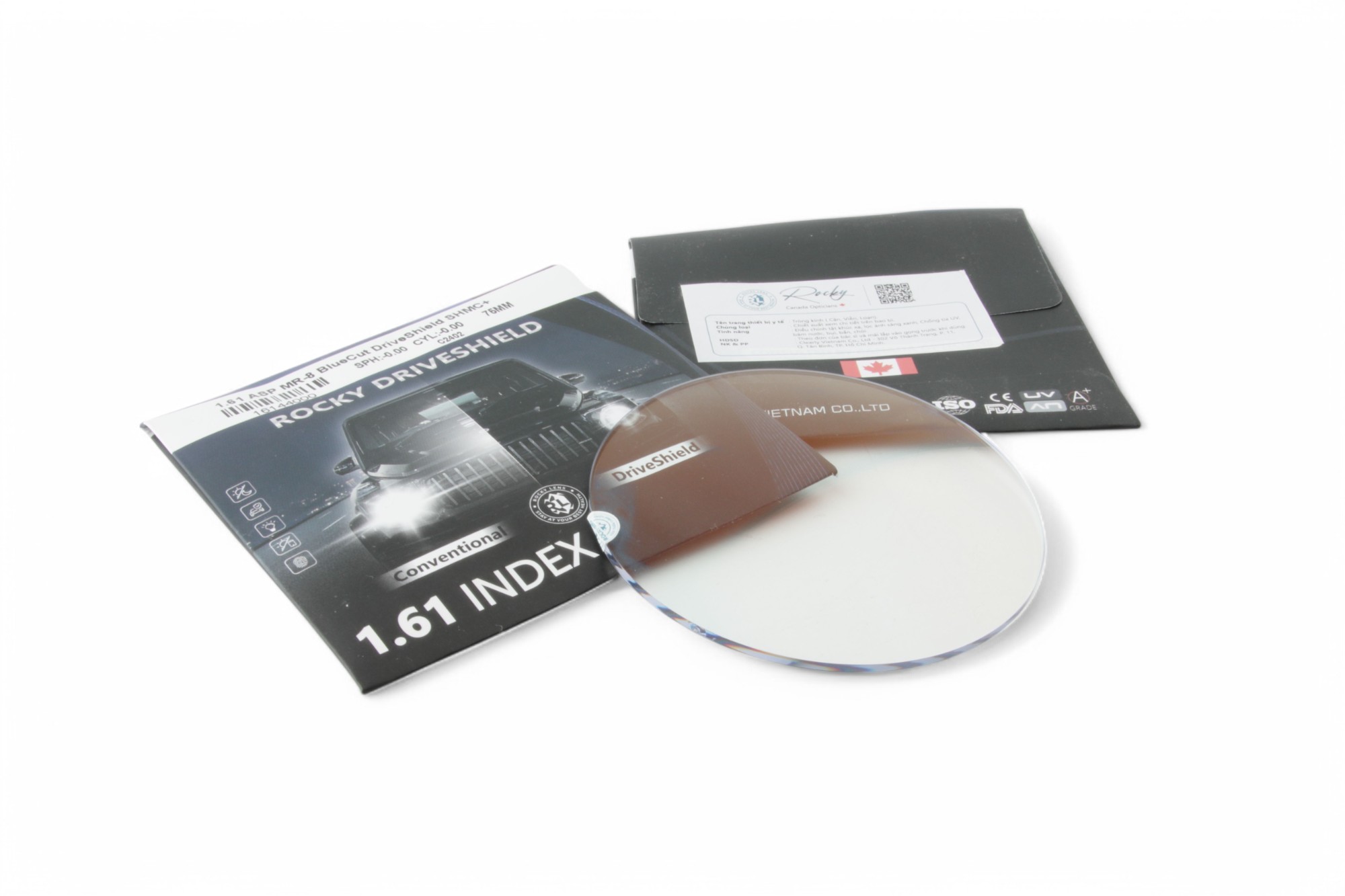 - Tròng kính Rocky driveshield 1.61 giúp giảm chói khi lái xe vào ban đêm.